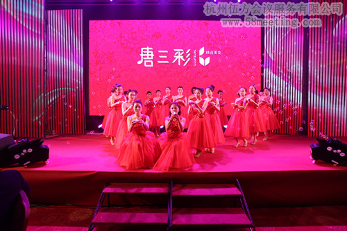 2013年1月16日,杭州唐三彩化妝品杭州公司,在杭州三立開元名都舉辦了2013年周年慶典,杭州伍方為此次活動(dòng)提供了場(chǎng)地選定、現(xiàn)場(chǎng)布置、晚會(huì)用餐、LED布置等相關(guān)的會(huì)議服務(wù),唐三彩公司自己編排的節(jié)目將現(xiàn)場(chǎng)的氣氛推向了高潮。與會(huì)者都表示對(duì)現(xiàn)場(chǎng)的表演以及活動(dòng)用餐等都表示十分滿意。而活動(dòng)現(xiàn)場(chǎng)的主持禮儀等都由自己公司的人員來?yè)?dān)任更是讓人眼前一亮。