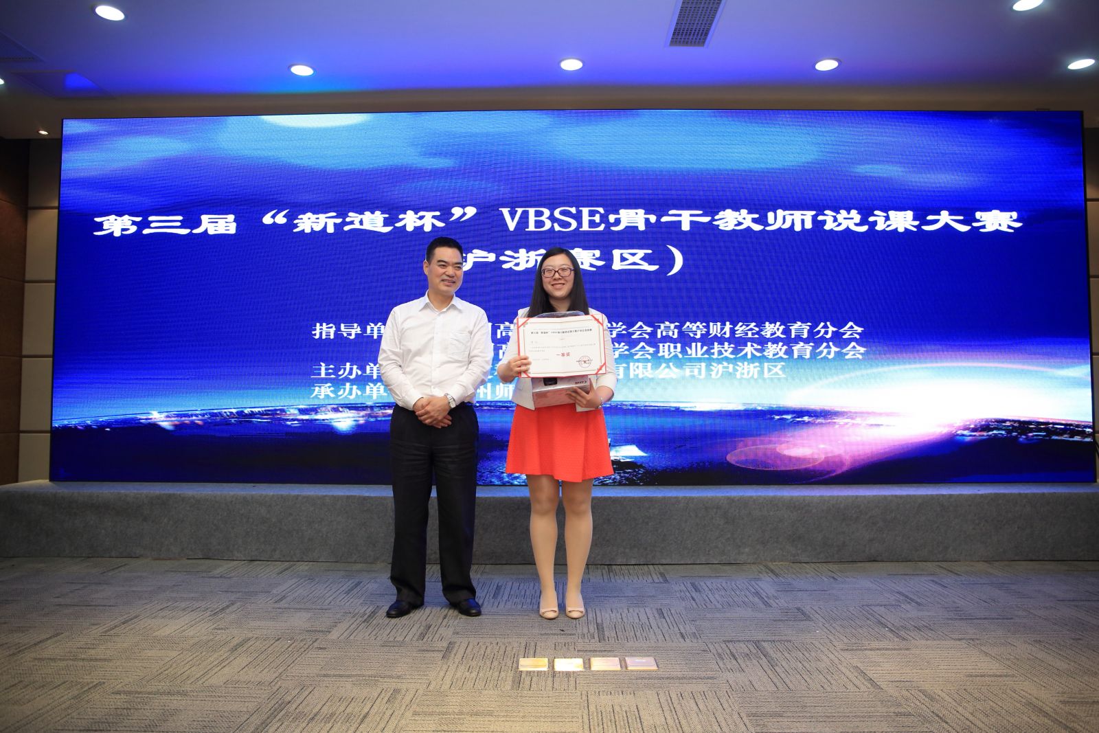 議同期舉辦了第三屆“新道杯”VBSE骨干教師說(shuō)課大賽滬浙區(qū)選拔賽。來(lái)自滬浙區(qū)八所院校的參賽嘉賓分別講解了新道VBSE(虛擬商業(yè)社會(huì)環(huán)境)的課程設(shè)計(jì)、教學(xué)實(shí)施及教學(xué)成果總結(jié),比賽現(xiàn)場(chǎng)氛圍十分激烈。