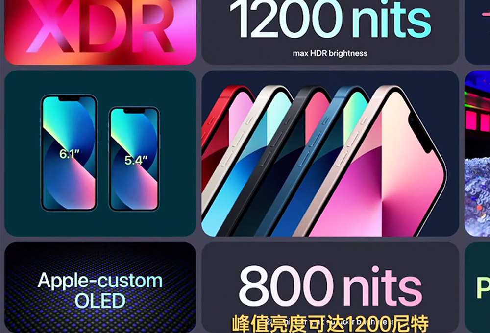 iPhone 13/mini搭載獨(dú)家定制OLED屏幕,平均亮度達(dá)到800nit,理論峰值亮度達(dá)到1200nit,支持HDR10顯示;蘋(píng)果獨(dú)有陶瓷保護(hù)層覆蓋,最高支持IP68級(jí)防塵防水;后置雙攝鏡頭采用對(duì)角線設(shè)計(jì),相比iPhone12系列辨識(shí)度更高。顏色上,iPhone13 mini、iPhone13有5種配色,分別是星光色、午夜色、藍(lán)色、粉色、紅色,iPhone13 Pro和iPhone13 Pro Max則只有4中配色,分別是銀色、石墨色、金色和遠(yuǎn)峰藍(lán)色。